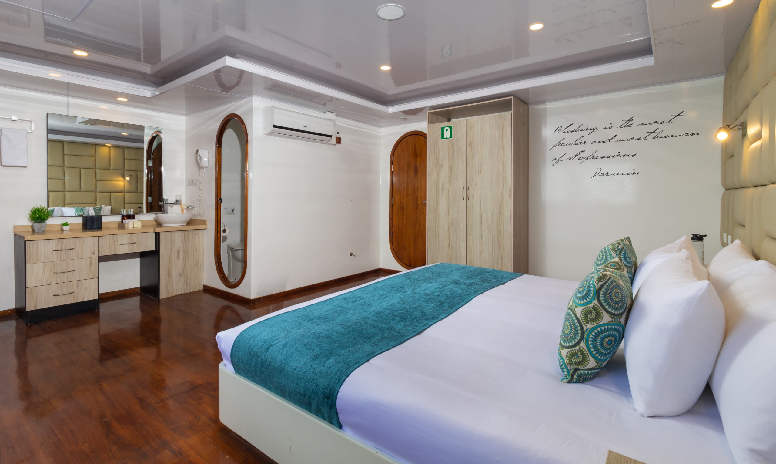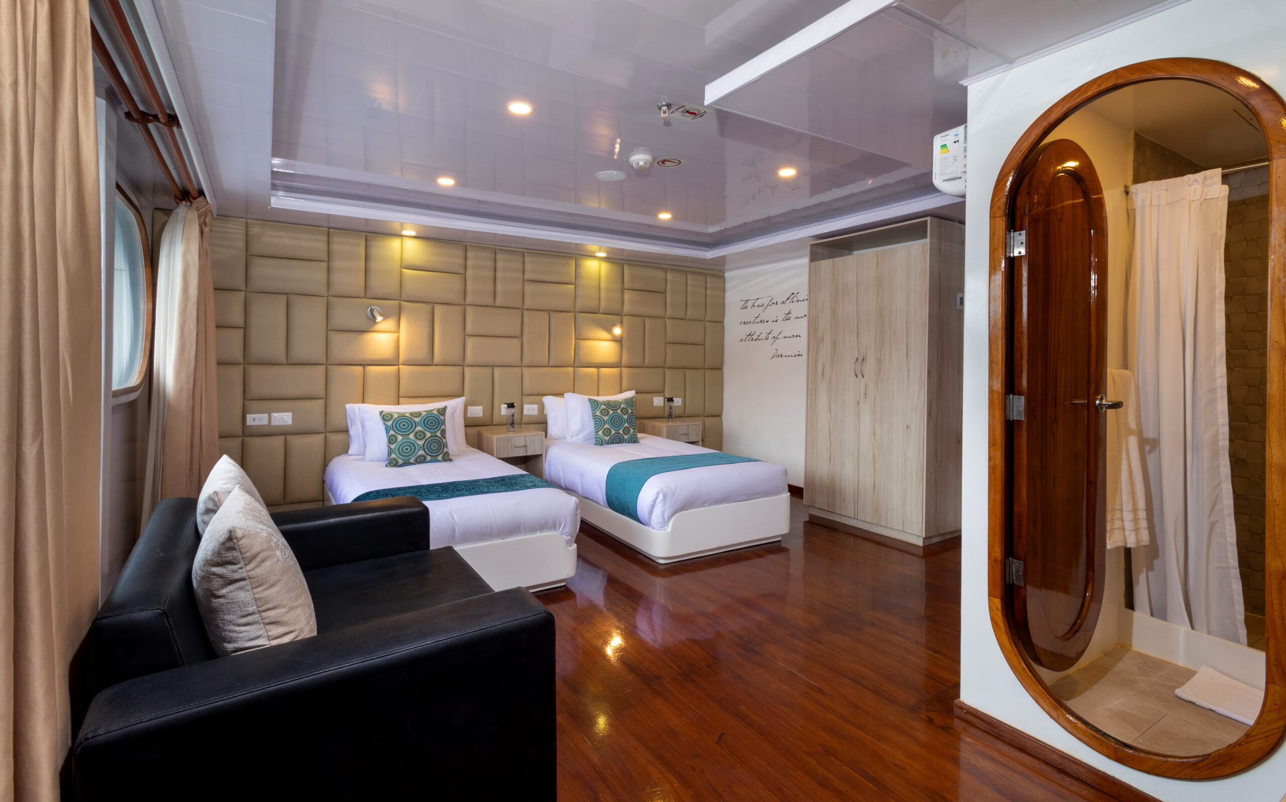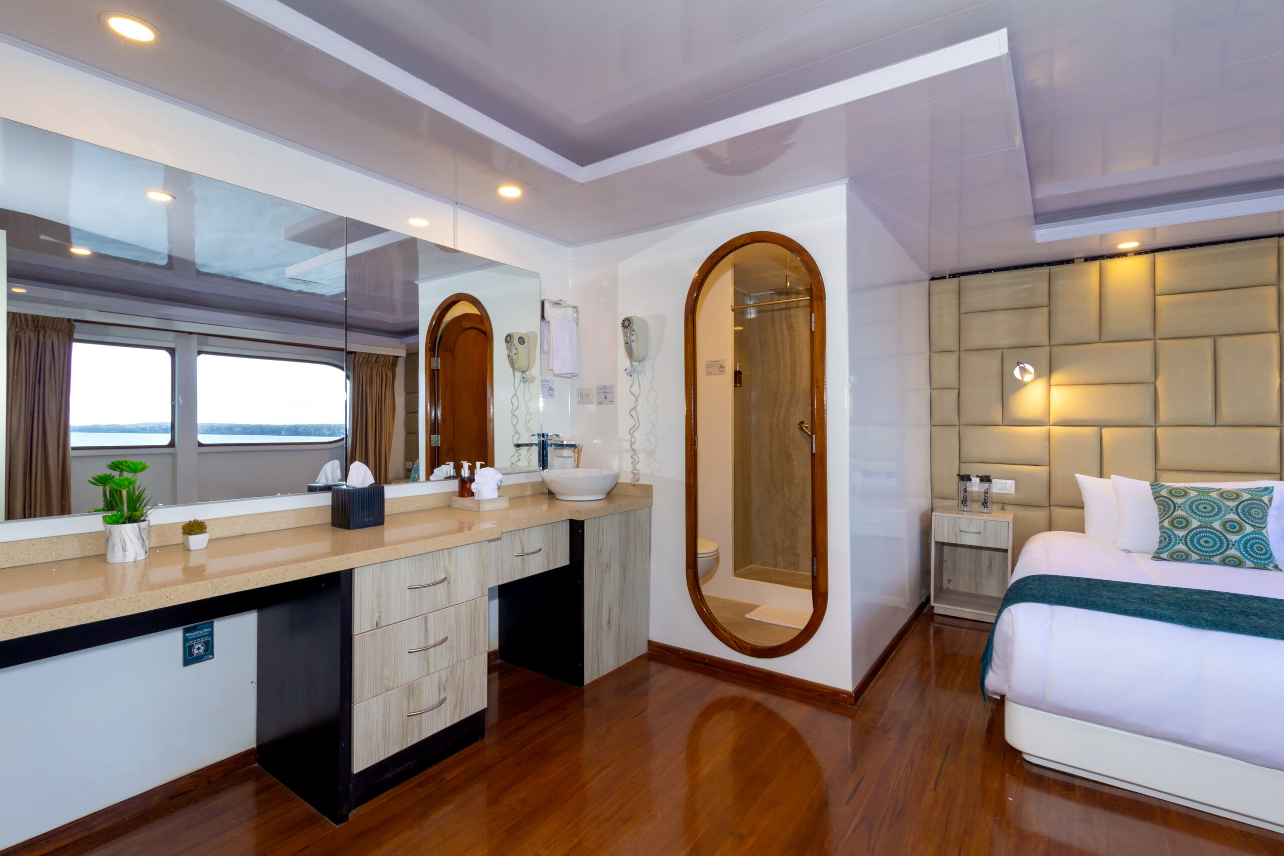| Crew | Captain, Bilingual Galapagos National Park Naturalist Guide, Cruise Manager, 8 other crew (First Mate, Second Mate, Chef, Sous Chef, Engineer, Assistant Engineer, Barman, Housekeeper) |